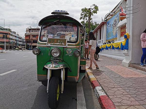 泰國特色交通工具嘟嘟車(Tuk-Tuk),專門承載遊客的交通工具。像老式摩托車改裝拼接的開放式車輛,